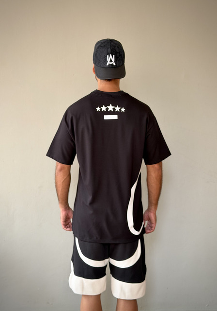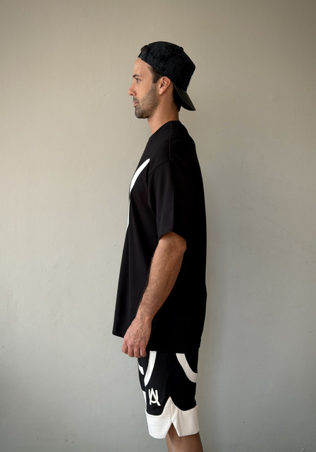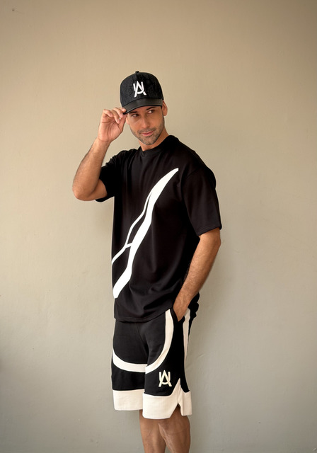 Esta camiseta negra destaca por su estética minimalista pero contundente. Al frente luce una “A” en cursiva de gran tamaño, creando un contraste elegante y llamativo que aporta identidad sin necesidad de recargar el diseño. Su silueta cómoda y el tejido suave la convierten en una prenda versátil, ideal tanto para looks casuales como para outfits más urbanos y sofisticados. Es una pieza que comunica estilo, seguridad y autenticidad con un solo detalle gráfico.