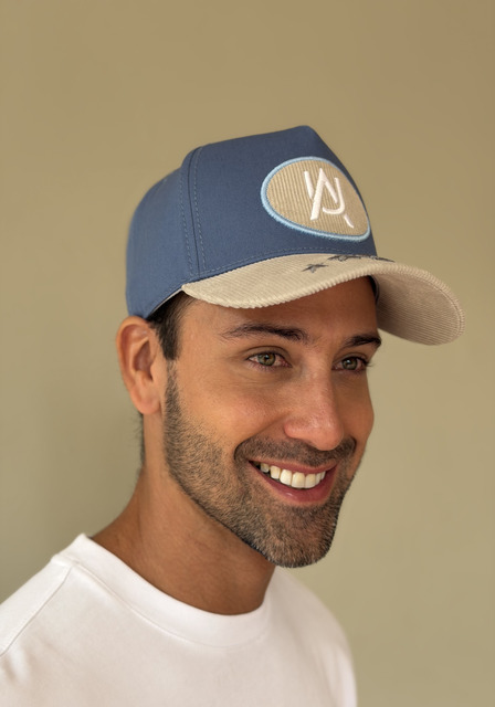 Esta gorra combina tonos azul y beige en un diseño fresco y llamativo que resalta por su estilo único. El panel frontal presenta un parche bordado con un emblema moderno en tonos suaves, creando un contraste elegante con la visera de textura acanalada. En el borde de la visera, una fila de estrellas bordadas añade un toque distintivo y lleno de carácter. Fabricada con materiales cómodos y ligeros, esta pieza es ideal para quienes buscan un accesorio versátil y con estilo, perfecto para elevar cualquier outfit casual con un toque creativo y diferente.