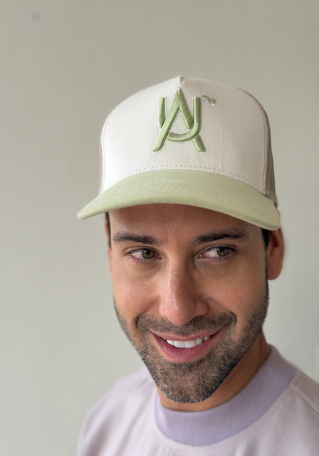 Esta gorra de estilo trucker o camionero combina un diseño clásico con toques modernos. La parte frontal, rígida y de color blanco, contrasta con la malla de poliéster de color beige en la parte trasera, que permite una buena ventilación. La visera, curvada y del mismo color verde menta que el logo, le da un toque fresco. En el centro de la parte frontal, un logo distintivo de la marca con las letras «A» y «W» entrelazadas está bordado en 3D en el mismo tono verde menta, creando una armonía de colores. Es un accesorio ideal para un look casual y veraniego.