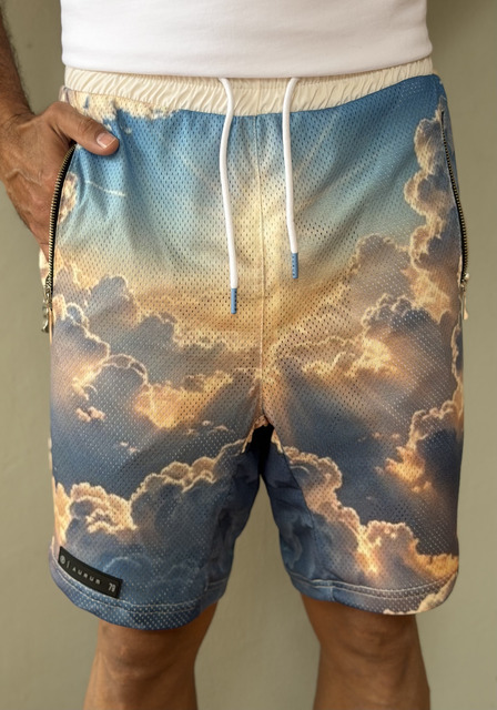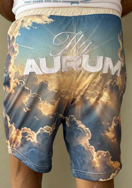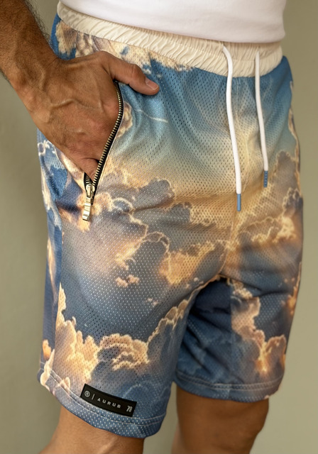 Este short combina estilo y comodidad con un estampado de nubes en tonos azulados y dorados que le da una vibra única, fresca y llamativa. Su tela tipo malla es ligera y transpirable, ideal para días cálidos o looks urbanos relajados. Cuenta con cintura elástica ajustable con cordón, bolsillos funcionales con cierre metálico y un bordado destacado “Fly Aurum” en la parte posterior que resalta su identidad premium. Un diseño pensado para quienes buscan piezas diferentes, llenas de estilo y personalidad.